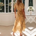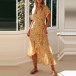 Bohemian Style Short Sleeve V-neck Irregular Ruffle Hem Printed Dress