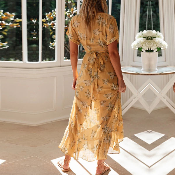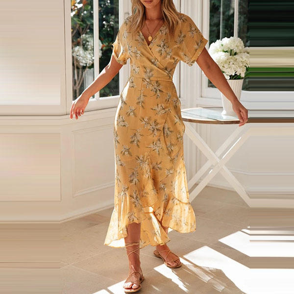When the summer season hits,it is time for you to invite this beautiful and dreamy dress to your wardrobe. It boasts vibrant floral print details,finished with short sleeve,v-neck and an irregular ruffle hem design,this piece makes it easy for any girl to look effortlessly charming and beautiful!
