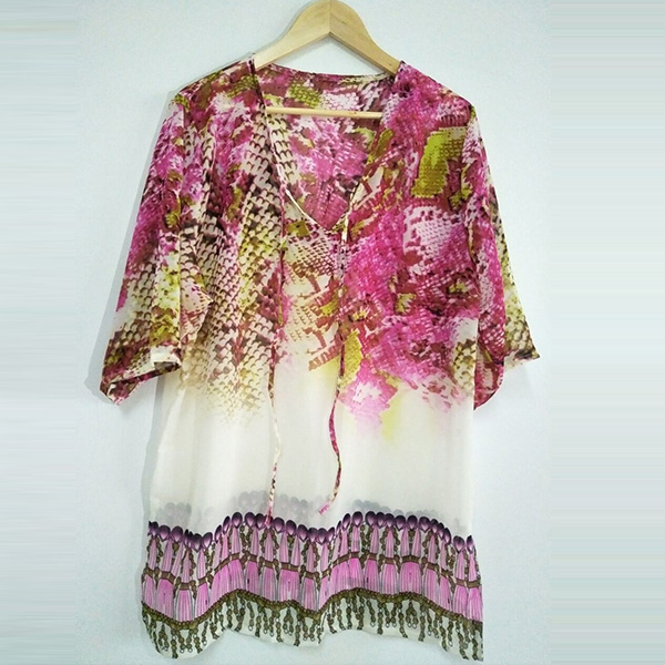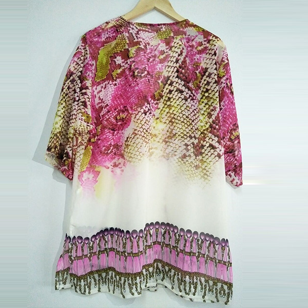 and eye-catching printed pattern,designed with short sleeve,v-neck and a loose silhouette,this item not only can protect
