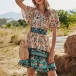 Bohemian Style Short Sleeve V-neck Printed Dress