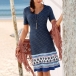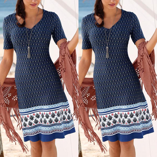 This bohemian style dress is perfect fit for your beach days and tropical getaways. Features chic printed details,with short sleeve,v-neck and a clean silhouette,this dress knows how to give you a cozy yet stylish style. It is worth to have a place in your summer wardrobe ensemble!