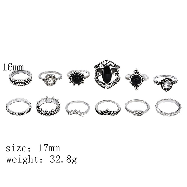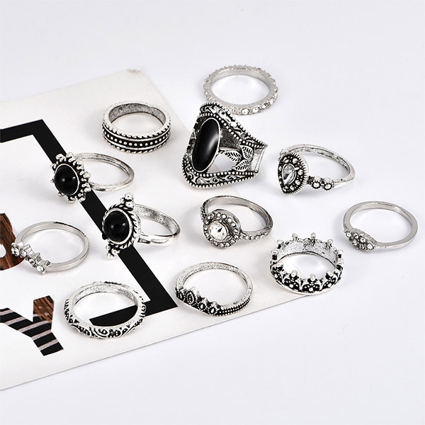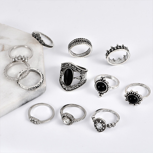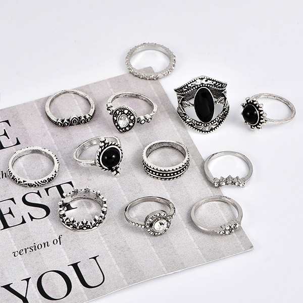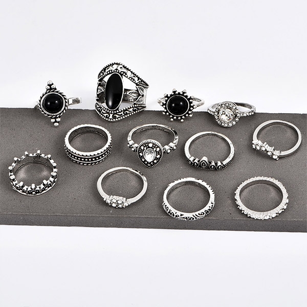 This ring set comes with a classic,retro yet stylish silver tone,including 12 pieces different rings,