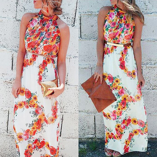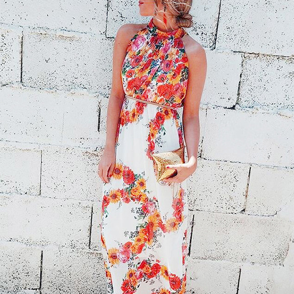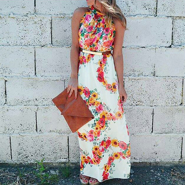 Boasts sweet and vibrant floral print,which brings you a romantic and playful vibe,while its elastic waist and maxi length