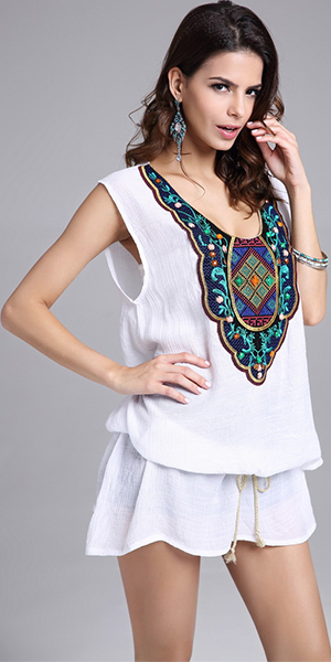 a charming and relaxed look! Neckline with embroidery design makes it more chic. Loose