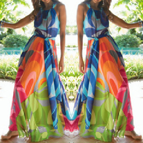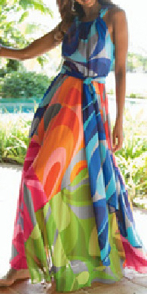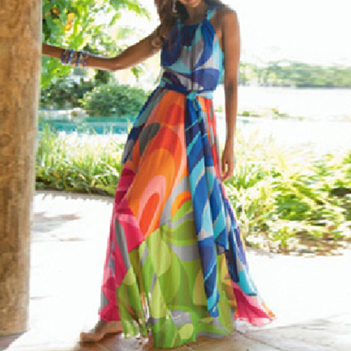 maxi dress is a perfect choice for you. Halter style,with chic printed pattern and maxi