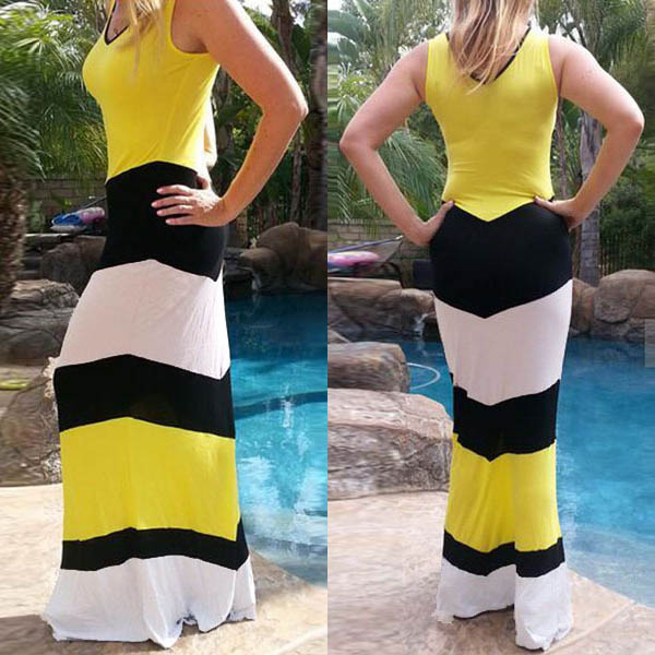 Showcase your charming summer style through this maxi dress. Designed with sleeveless,