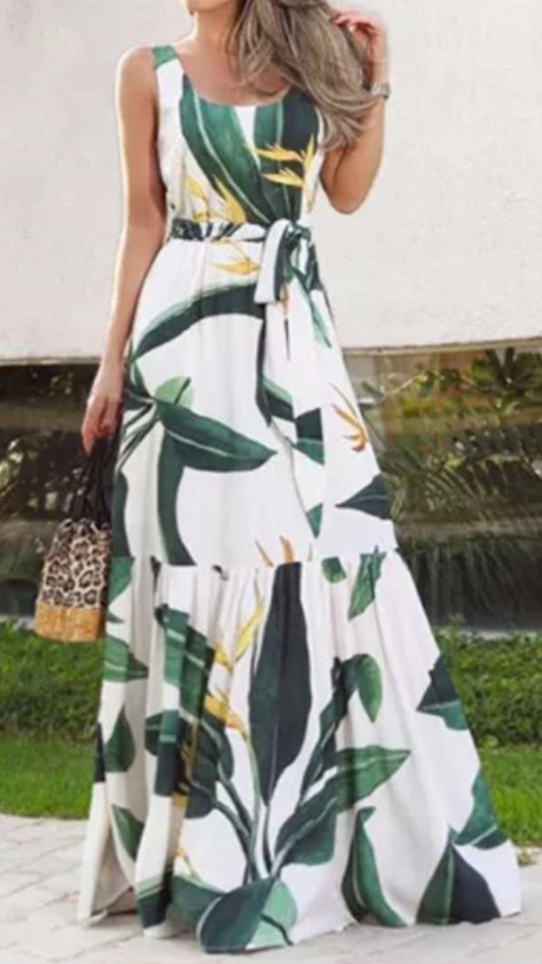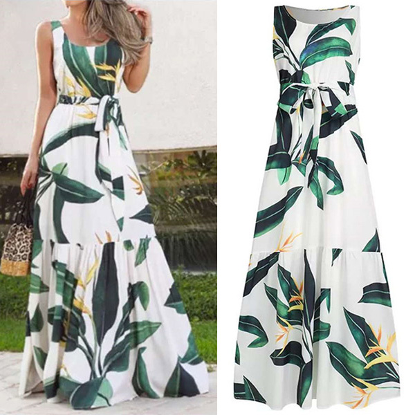Wanna a bohemian style summer look? Then look no further than this printed dress. The high waist and maxi length design can showcase your slender figure. Features chic and eye-catching printed pattern,with sleeveless and round neck design,this dress can give you an easy transition from daytime out to night events to holiday trips.