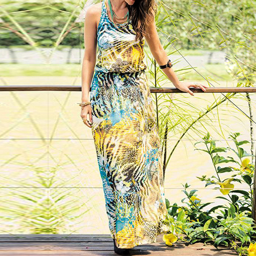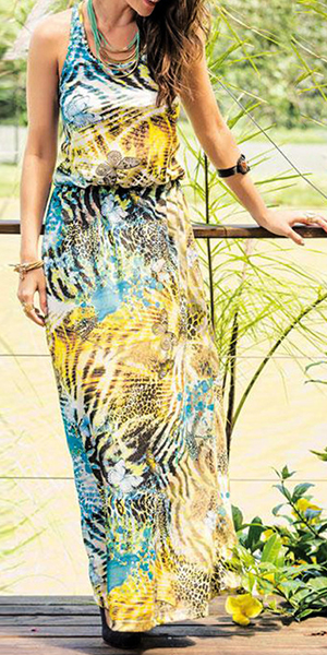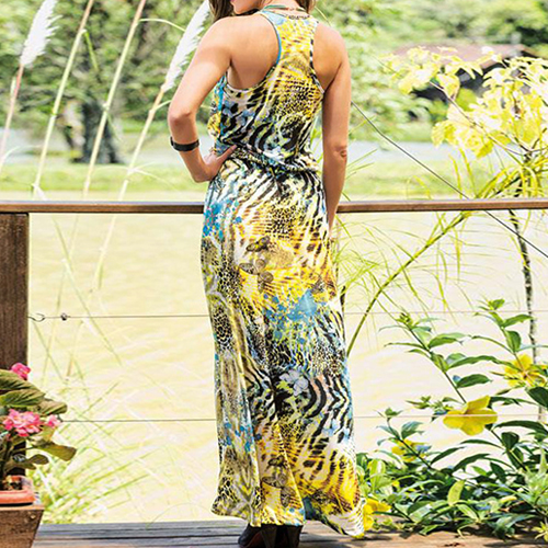 sleeveless,round neck and high waist design,this maxi dress is sure to give you a charming look.