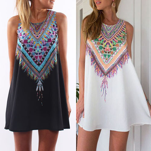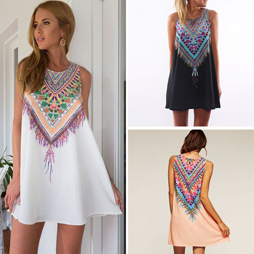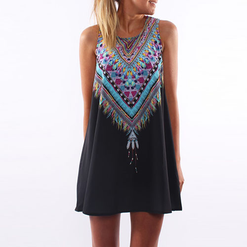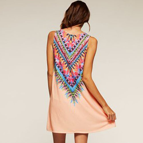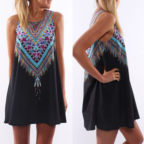 Spend the day soaking up the sun in this sleeveless dress. It is outfitted with a loose silhouette,