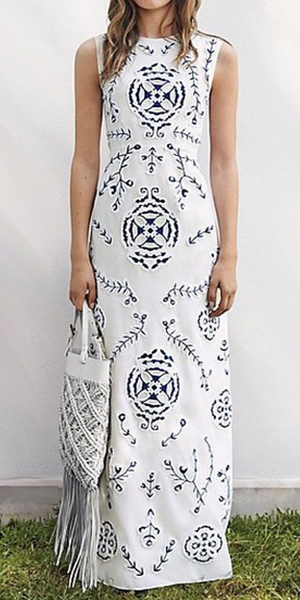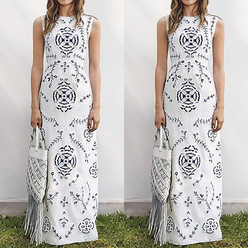 round neckline and a maxi length,delicate and stylish. Whether it's a fun day out or romantic date,this dress