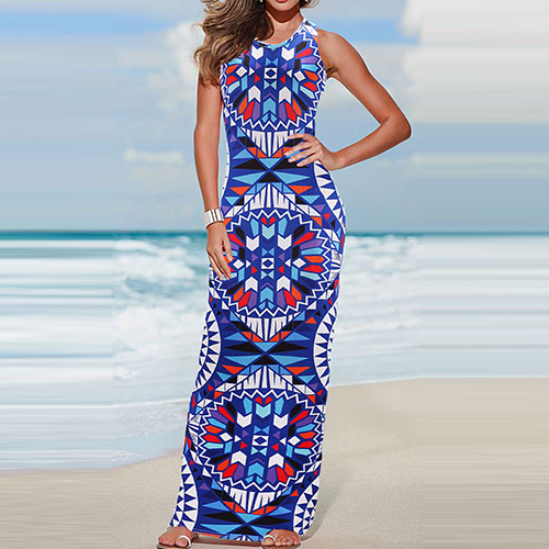 you choosing this one. Boasting a chic and eye-catching printed pattern,with sleeveless,round neck