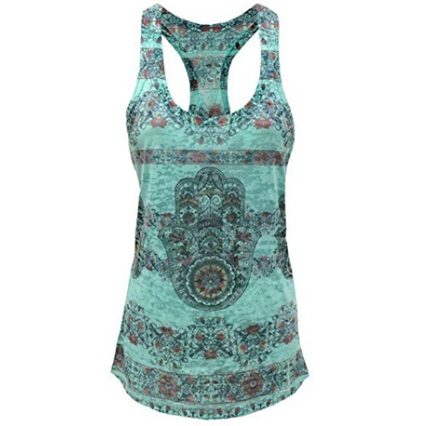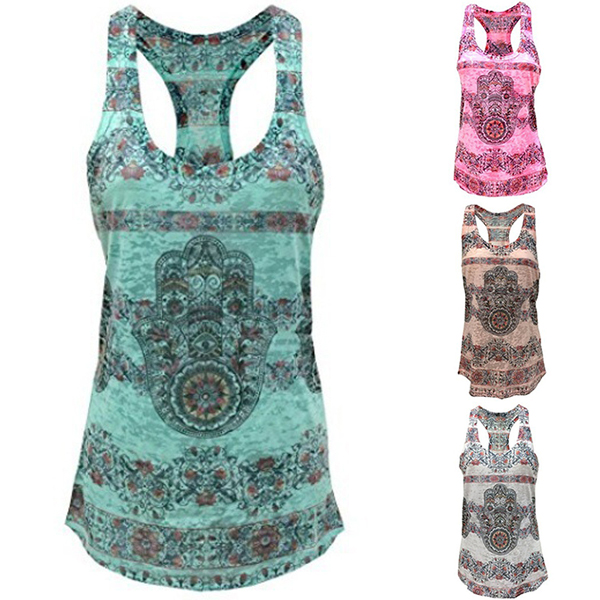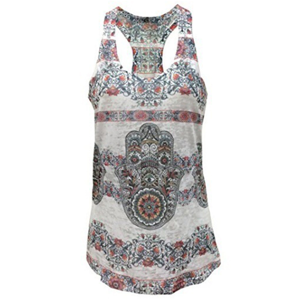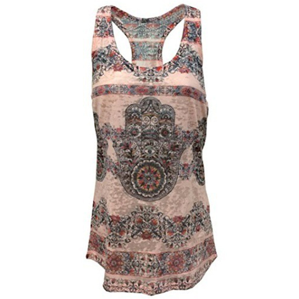 This bohemian-themed t-shirt is a good choice for your summer beach trips or tropical getaways. Features chic printed pattern,