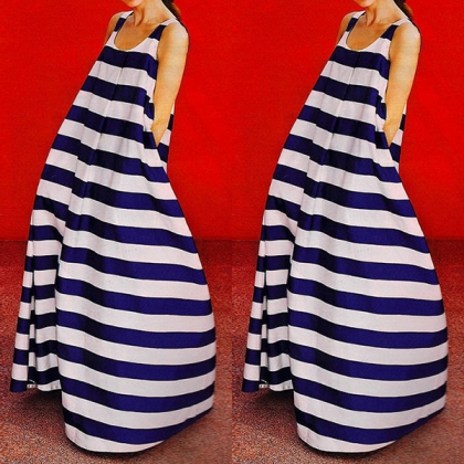 For your summer beach days or tropical getaways,this bohemian-themed dress is a good choice. Striped style,
