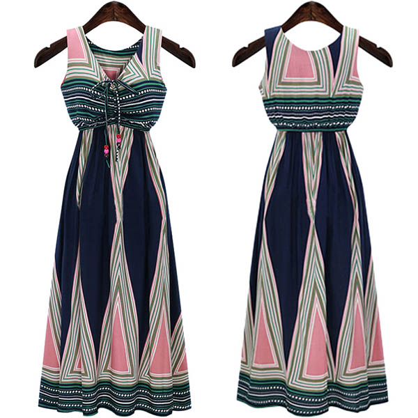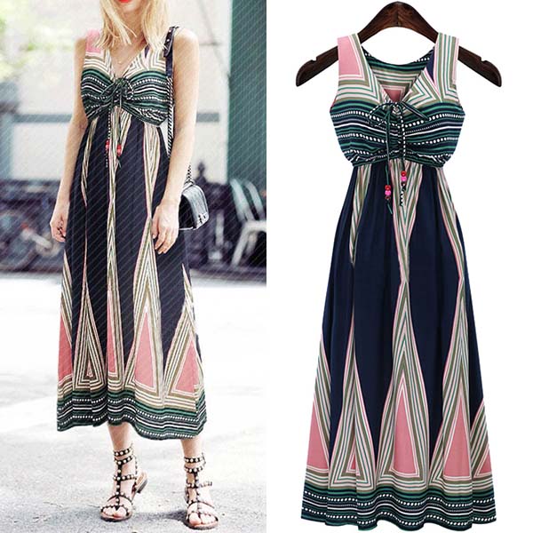 So how about this one? Features chic printed pattern,with sleeveless,v-neck,high waist and a maxi length,