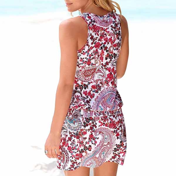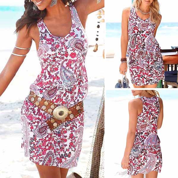 with sleeveless and v-neck design,this cozy yet stylish dress is perfect fit for your beach days