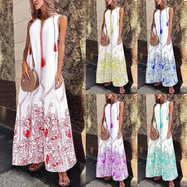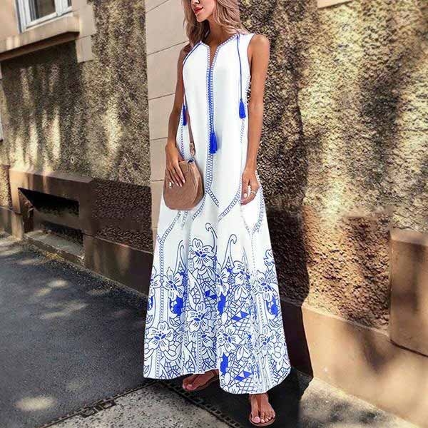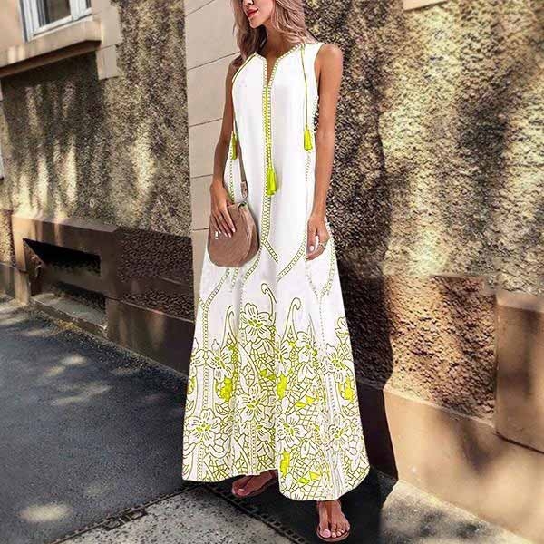 The maxi length design can showcase your slender figure. Finished with sleeveless and v-neck design,
