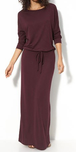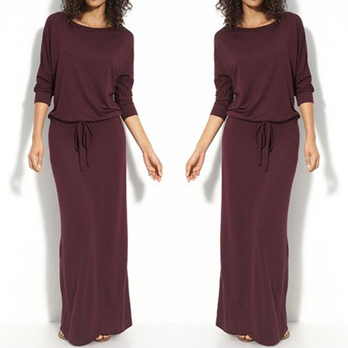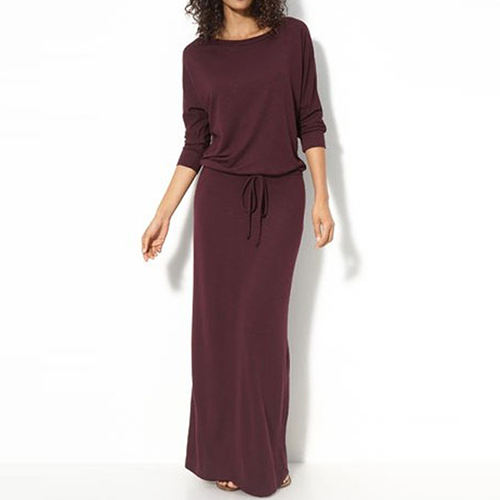 with long sleeve,round neck,drawstring waist and a maxi length,this dress can keep elegant from daytime to night.