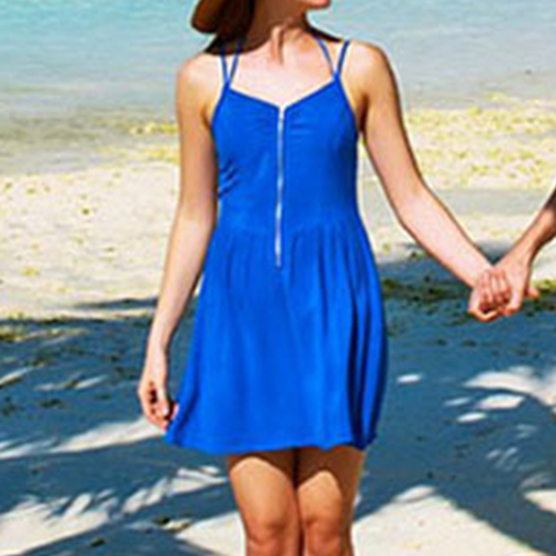 This bohemian style dress is a perfect choice for your seaside trips. Sling style,boasting a solid color