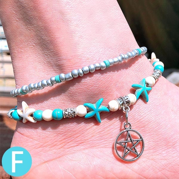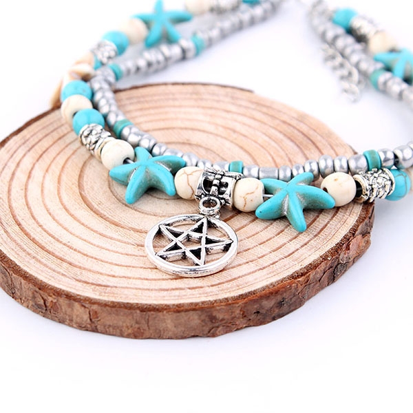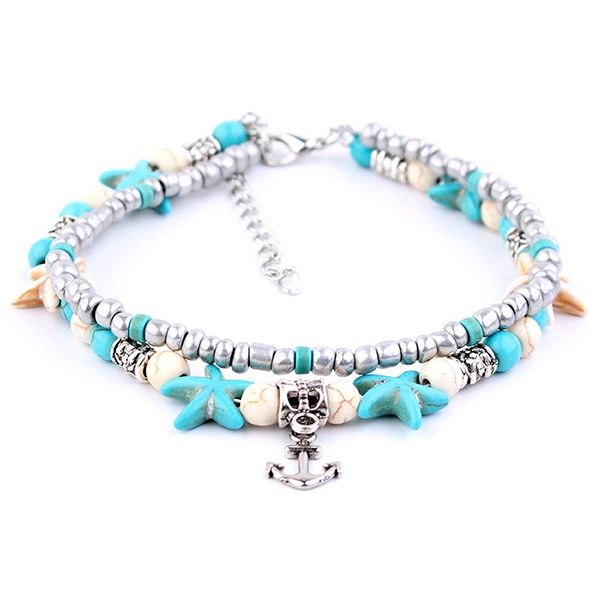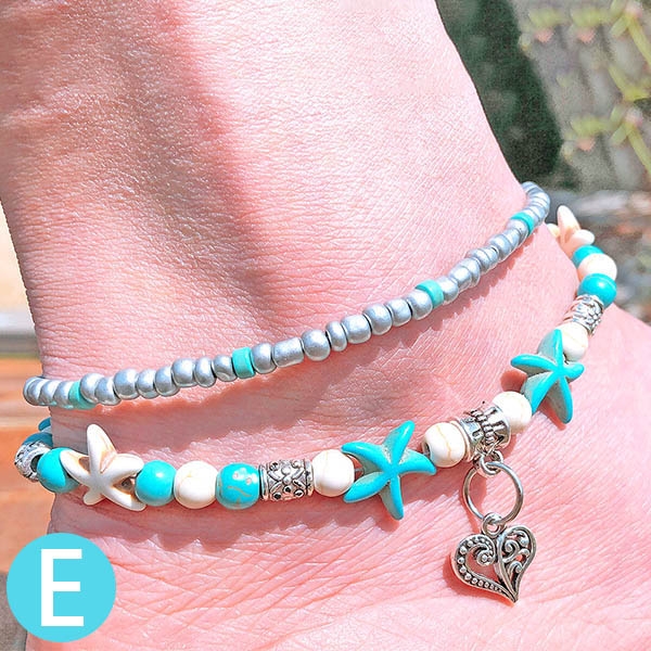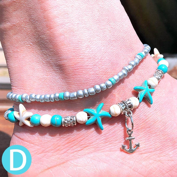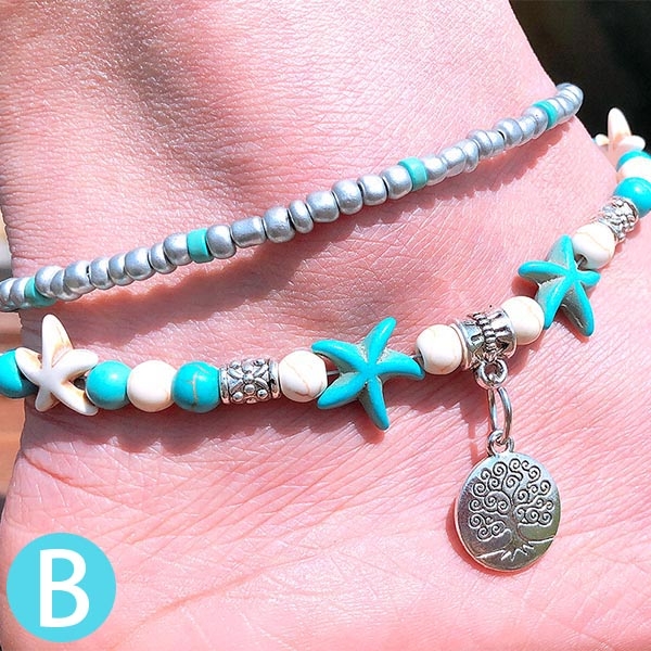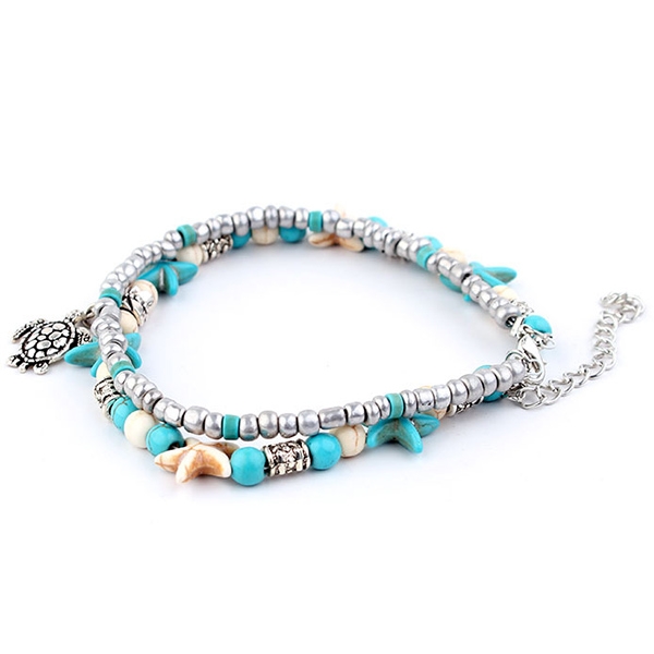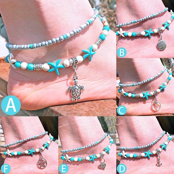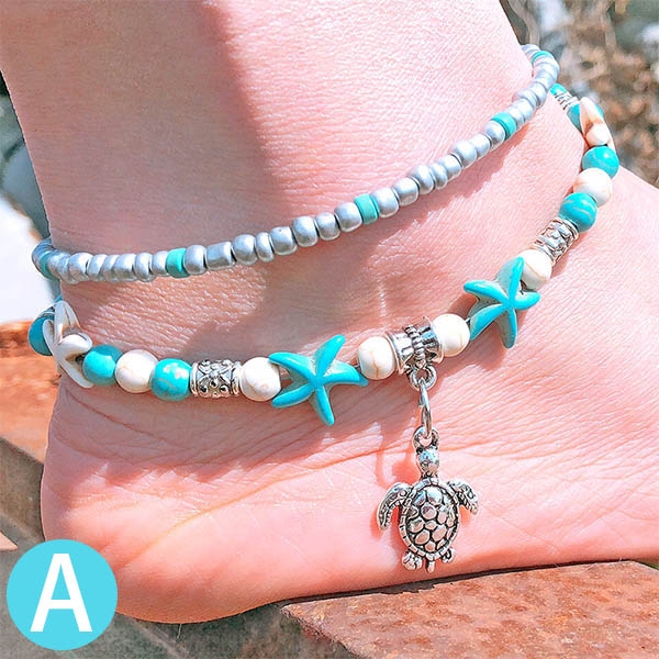 Bohemian Style Starfish Turtle Pendant Beaded Anklet