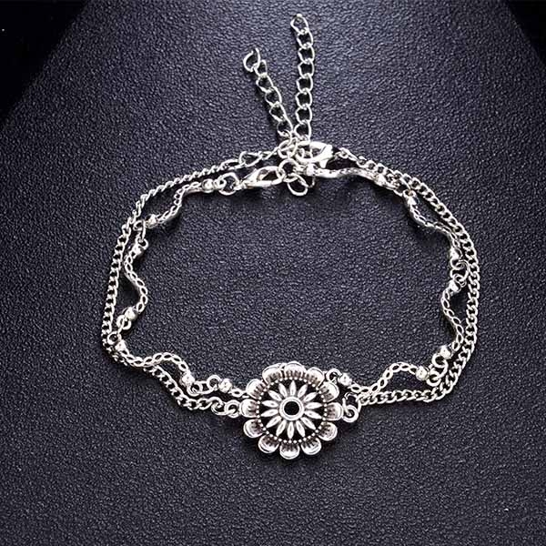Bohemian Style Sunflower Pendant Anklet Set 2 pcs/Set