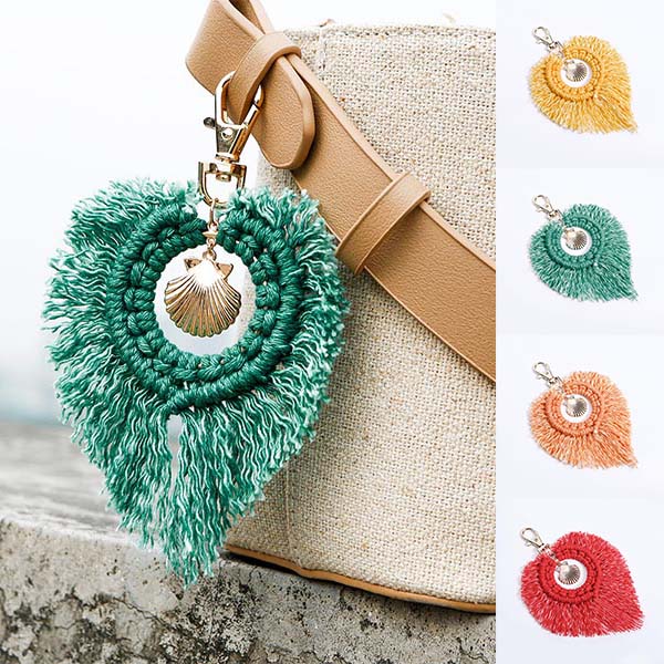 This decoration is designed with tassel details and shell pendant,chic yet stylish. This decoration can be hanged to your backpack,handbag,key chian and so on. Different colors for your optional.