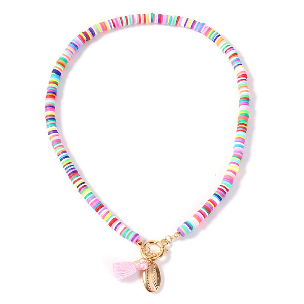 Bohemian Style Tassel Shell Pendant Colorful Beaded Necklace