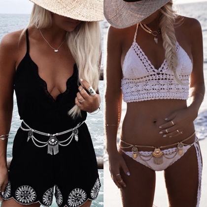 If you wanna a more eyee-catching and beautiful beach look,you can consider adding this waist chain.