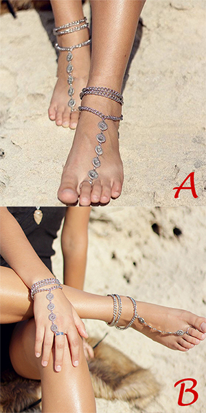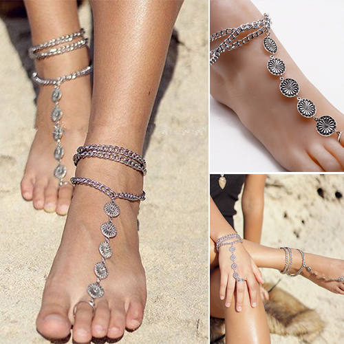 Bohemian Style Triple-Layer Finger Harness Bracelet/Toe Harness Anklet