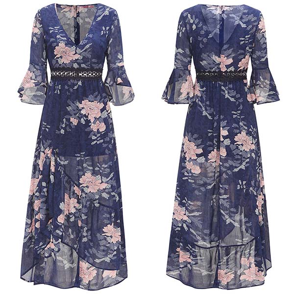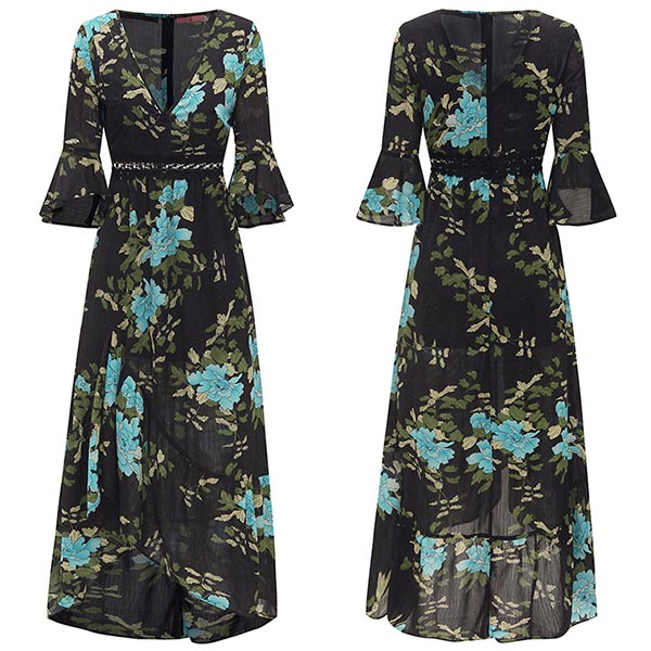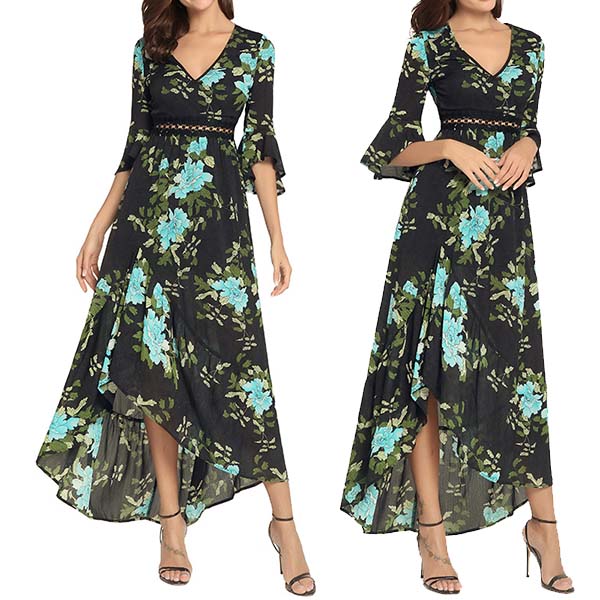 its trumpet sleeve,v-neck,irregular hem and lace spliced design make this piece look so sexy and attractive.