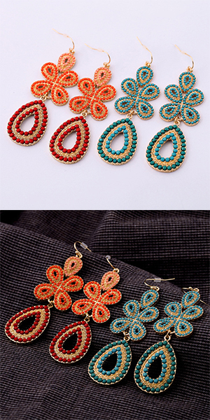Beaded flowers and water-drop design,chic and stylish. Try to pair it with your