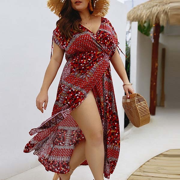 the v-neck and slit hem design will exude your sexy and feminine side. For your beach days or tropical