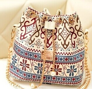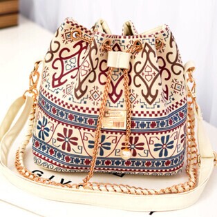 Bohemian Women's Shoulder Bag With Chains and Print Design