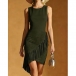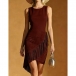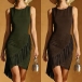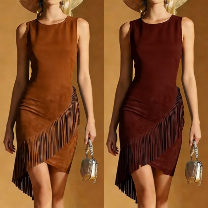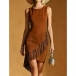 Boho-chic Crew Neck Sleeveless Fringe Irregular Hemline Bodycon Dress