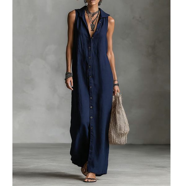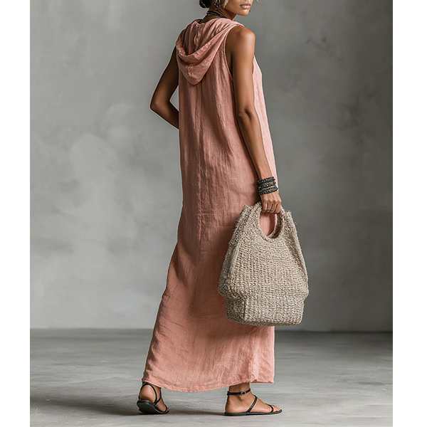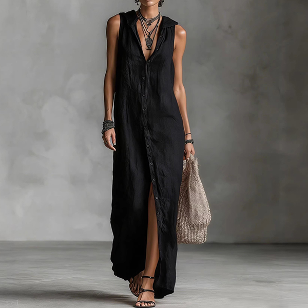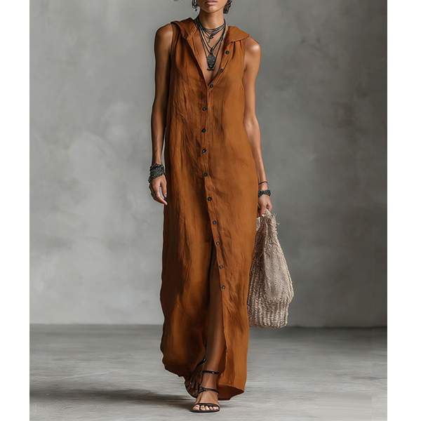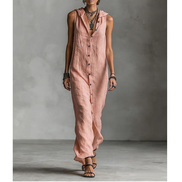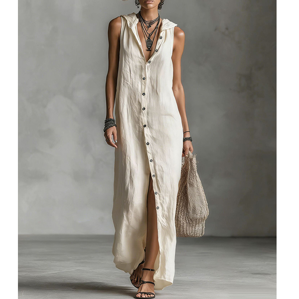 Boho-chic Sleeveless Button Down Casual Hooded Summer Dress