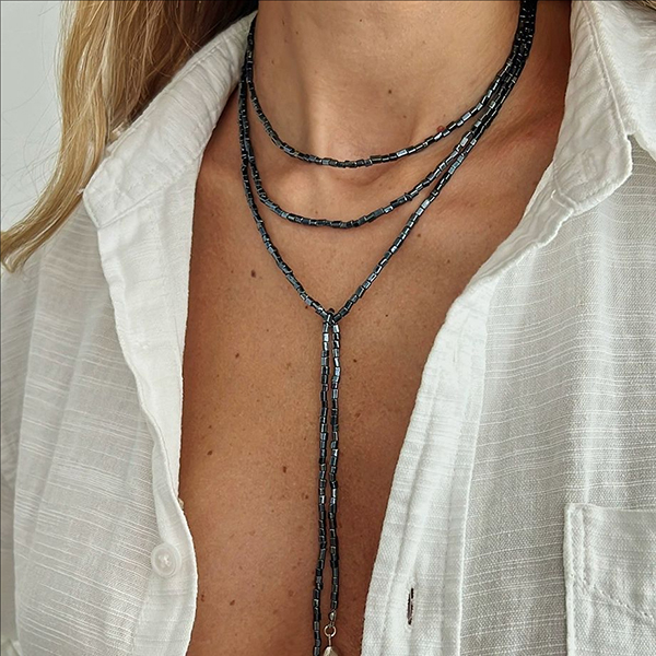 Boho-chic Triple-Layer Minimalist Dark Bead Y-Necklace