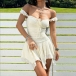 Boho Mini Dress - Ruched Jacquard Lace with Ruffle Hem & Tie Front