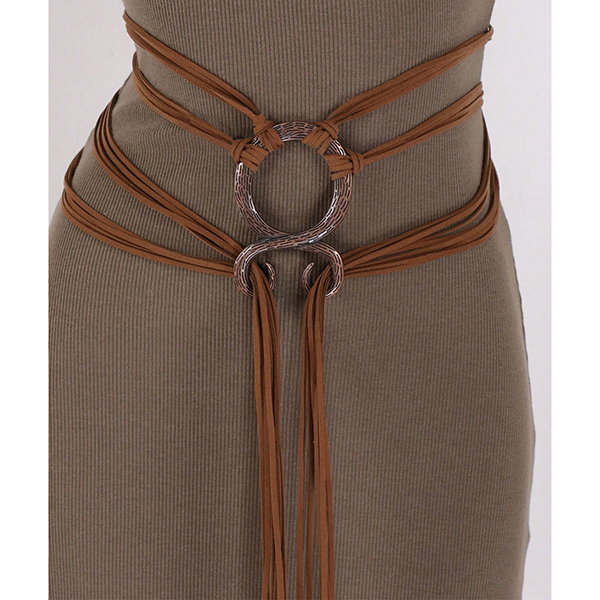Boho Multi-Strand Faux Suede Belt with Textured Antique Ring