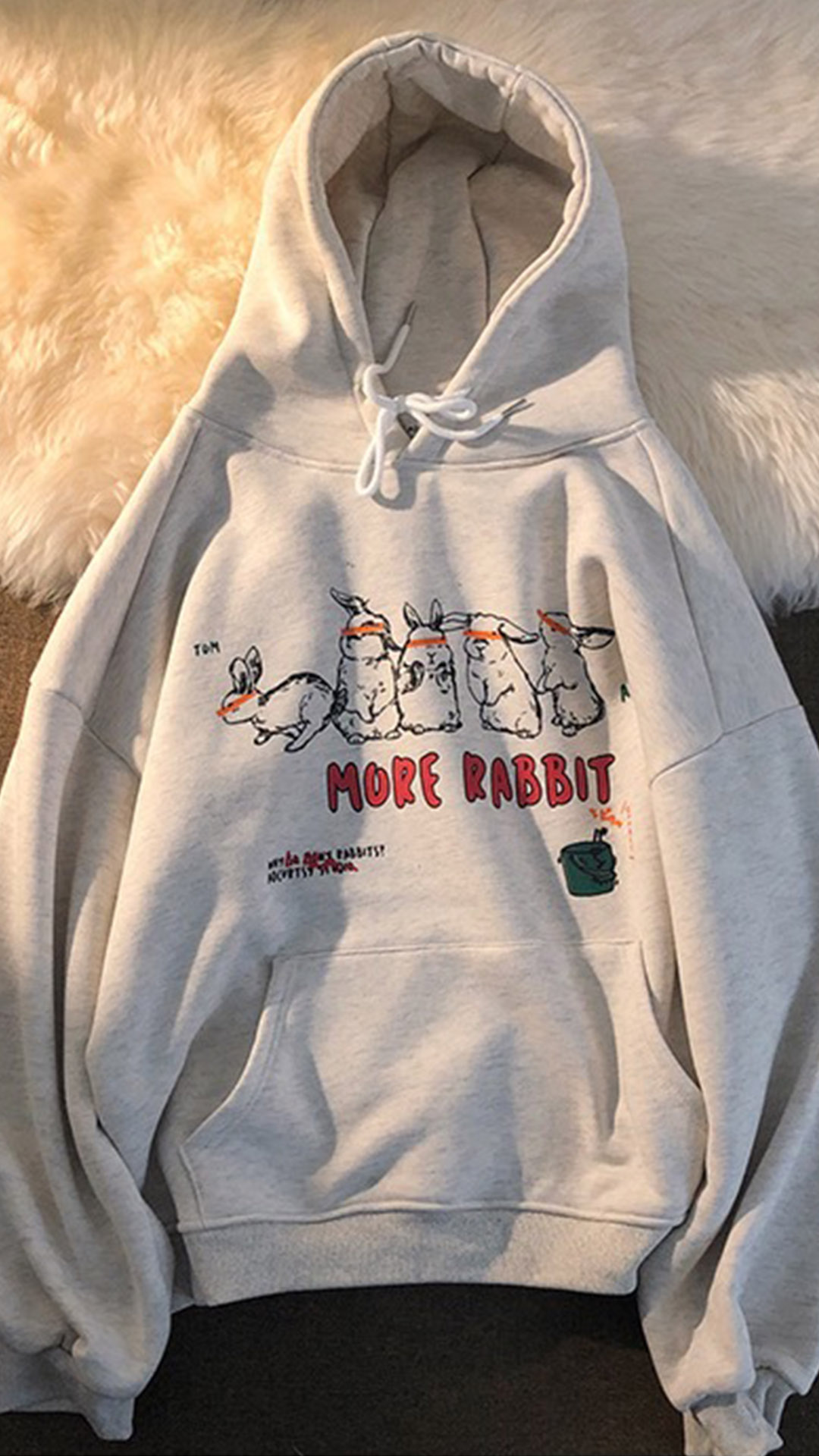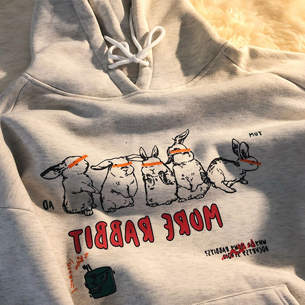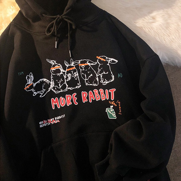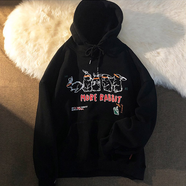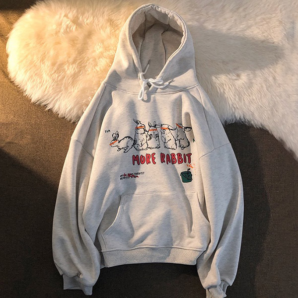 Boyfriend Style Letters Rabbit printed Long Sleeve Hooded Loose Sweatshirt