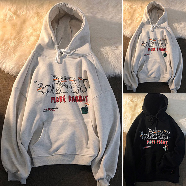 Like the boyfriend style outfit? Then you can make your eyes focused on this sweatshirt. The letters and rabbit printed pattern design will add some cute and playful vibes. Crafted from soft and breathable cotton fabric,with long sleeve,hooded and a loose silhouette,this sweatshirt is sure to give you an all-day comfort.