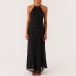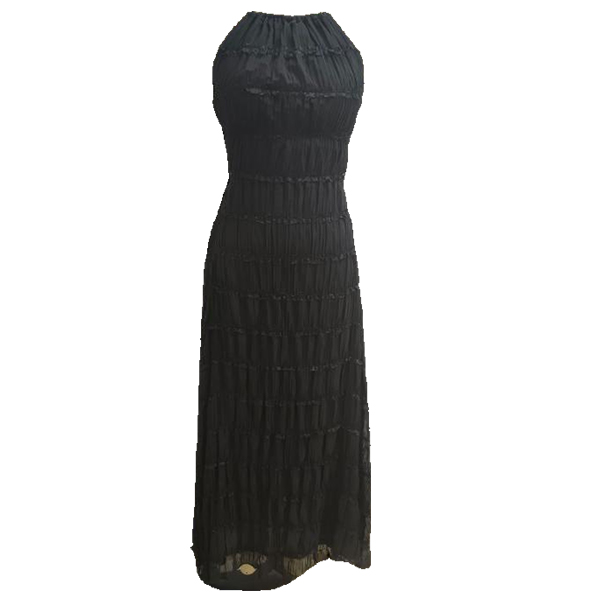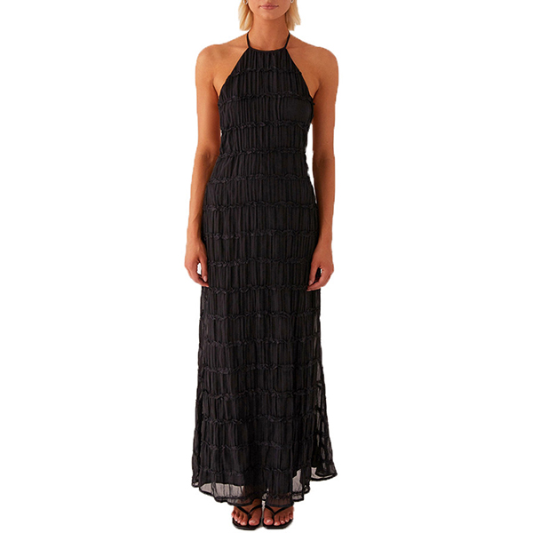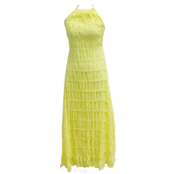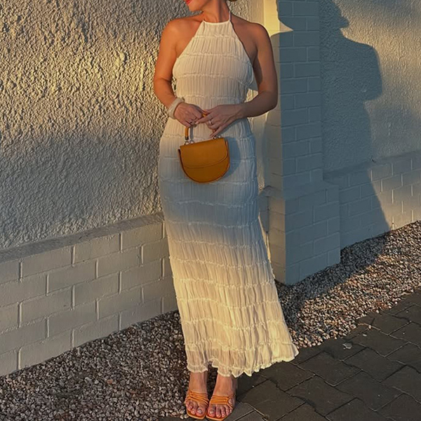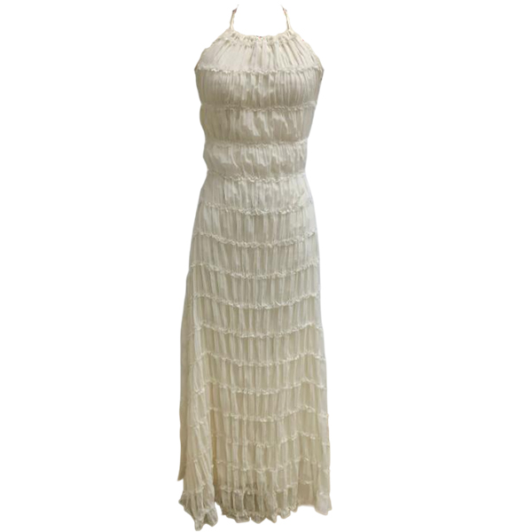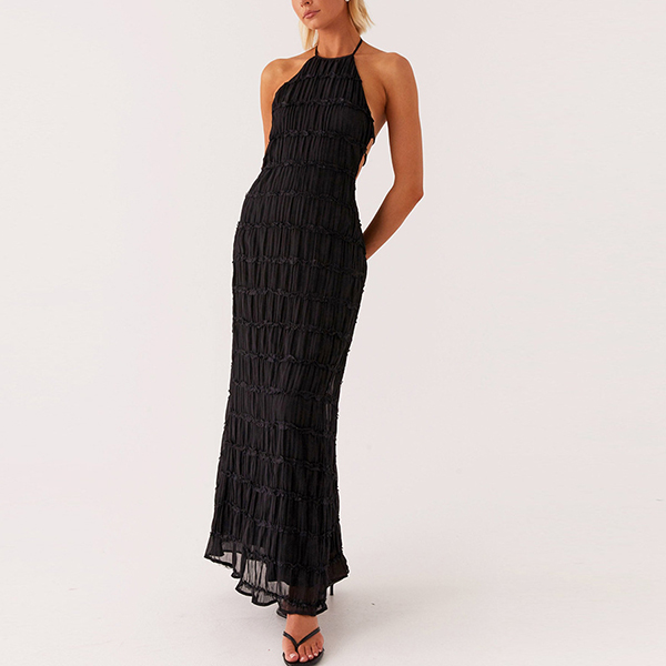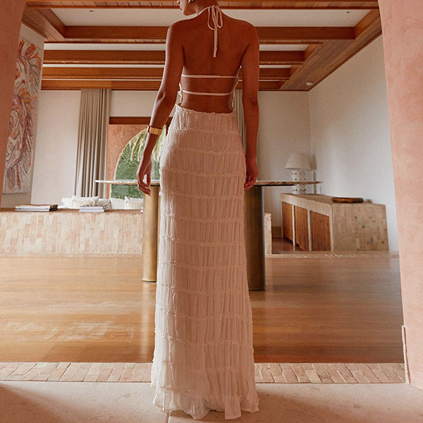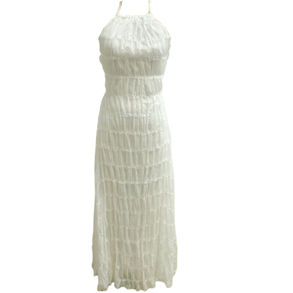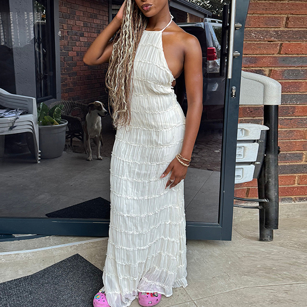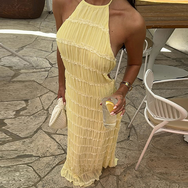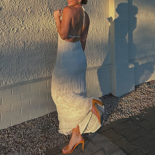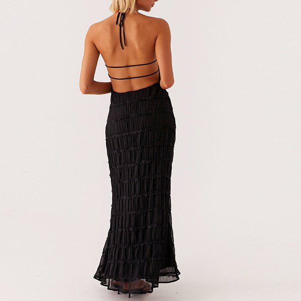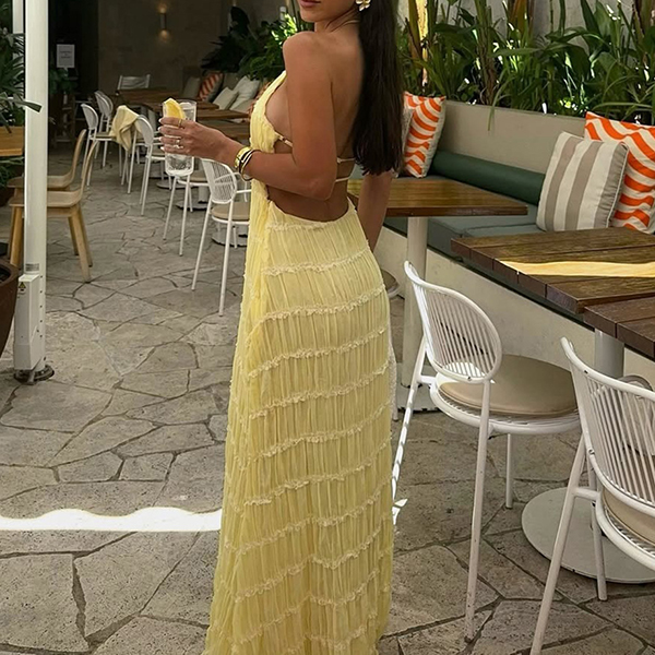 Breathable Lace Fabric Backless Ruffle Hem Maxi Dress