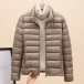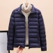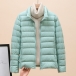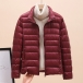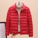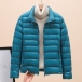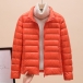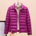 Bright Color Lightweight Thin Down Jacket with Stand Collar Cut and Long Sleeve for Warmth