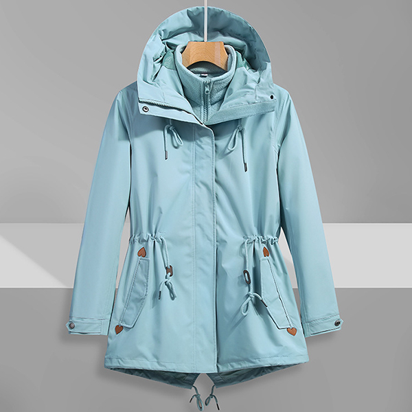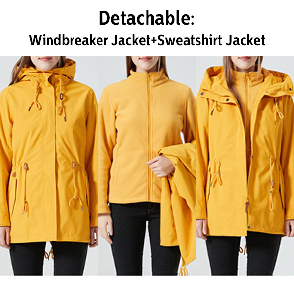 This 3 in 1 womens ski jacket for all weather conditions in this season, combines with a shell and an inner fleece jacket. The shell can be as a windbreaker in spring and autumn. Anti-static inner fleece jacket makes great heat retention, keeping you warm and comfortable in deep autumn. The shell and fleece liner can be combined to fully seal to prevent cold in frost winter. Besides, detachable drawstring hoods with a chin-guards, double forepart, zippers help to keep the wind out in storm winter. It is perfect for outdoor workout such as: skiing, rock climbing, hiking, cycling, trekking, mountaineering, tourism, camping.....