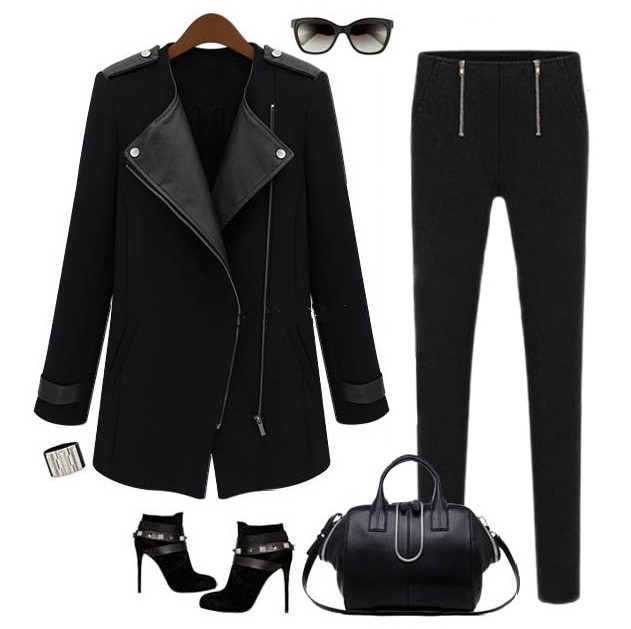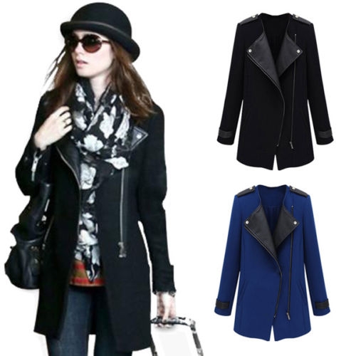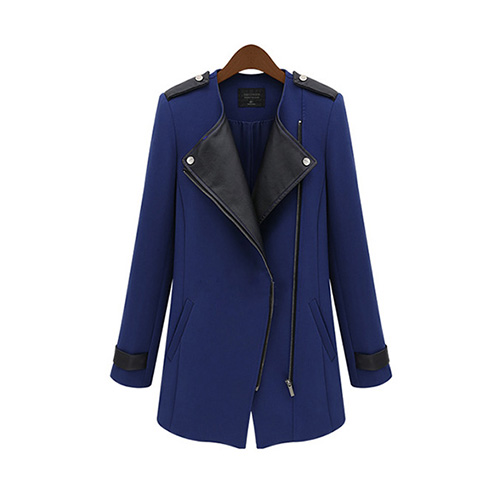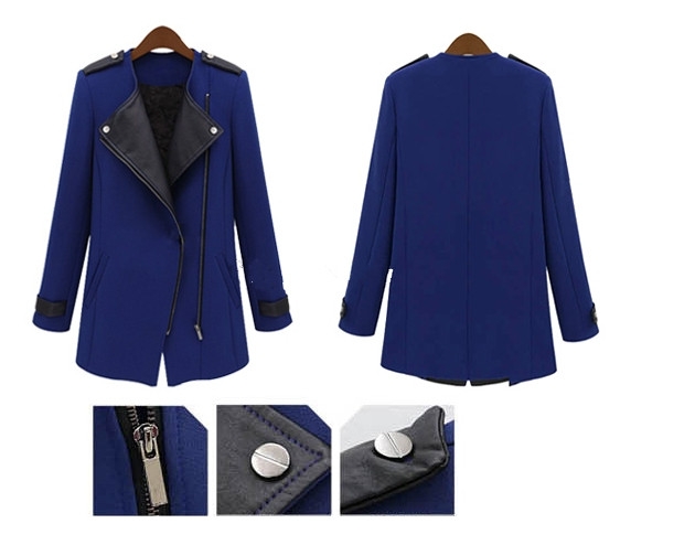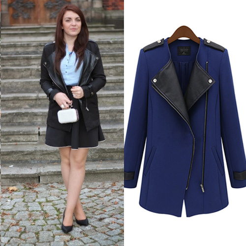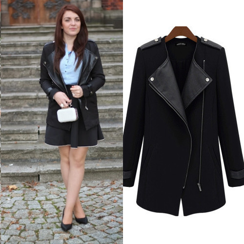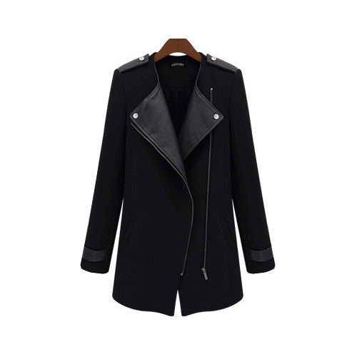 Take this coat to spend an unique and warm winter. It will not only show your elegant temperament,but also keep you warm. Features PU leather spliced lapel. Front inclined zipper closure and slim fit design. Pair it with your jeans and boots.