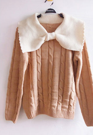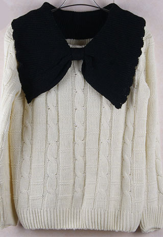 Big big white bowknot! Like it? This sweater is made-to-be sweet sweater. It features the big bowknot decoration on the neckline. Cute? Sweet? Like it? Add it to your wardrobe. And it will never let you down for its high quality. This sweater is made of high quality cotton that it is durable and fastness. Pair with a shirred navy blue skirt; you will look more cute and sweet.