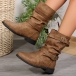 Buckle Low Heel Knight Boots: Women's Mid-Calf Retro Rubbed Color Flat Boots