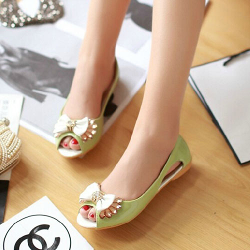 This flat sandal features an ope toe,a solid colorway,a bwoknot embellishment with rhinestones,cutout detail at the side and high quality,skidproof rubber sole.Team it with your favourite dress or shorts.