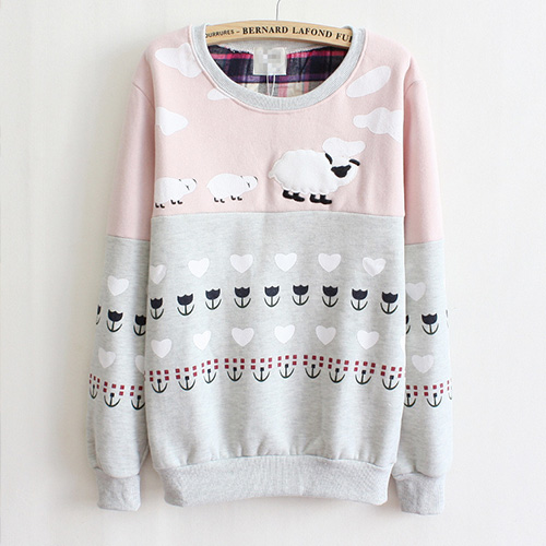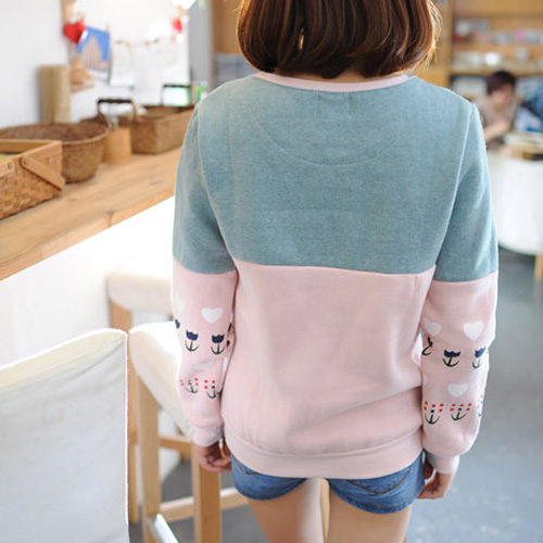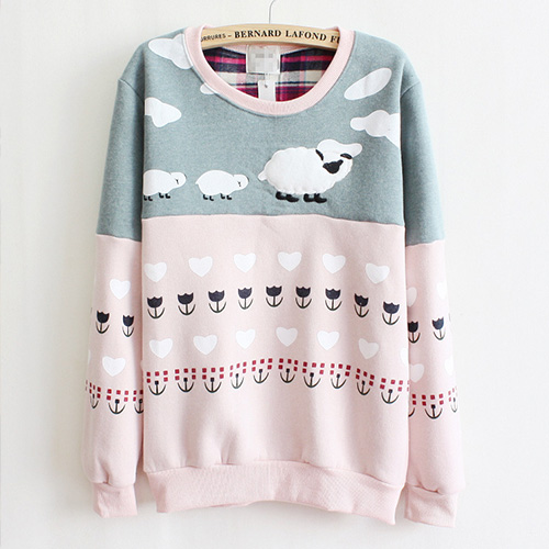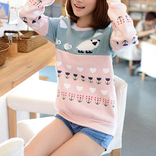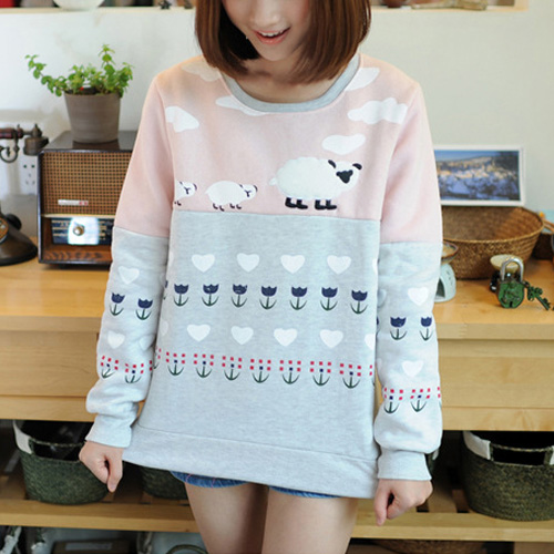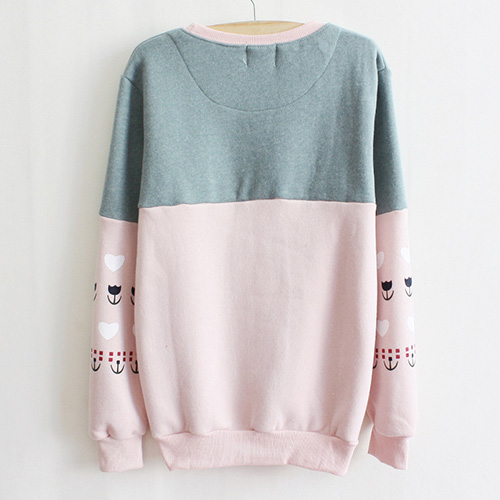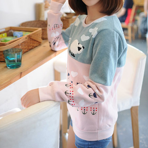 cute and sweet. Long sleeve,round neck and contrast color design. Enjoy the leisure time with this sweatshirt.