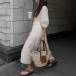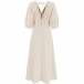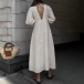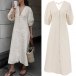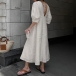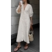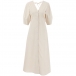 Casual and Comfy V-neck Elbow Sleeve Front Button Cotton and Linen Dress