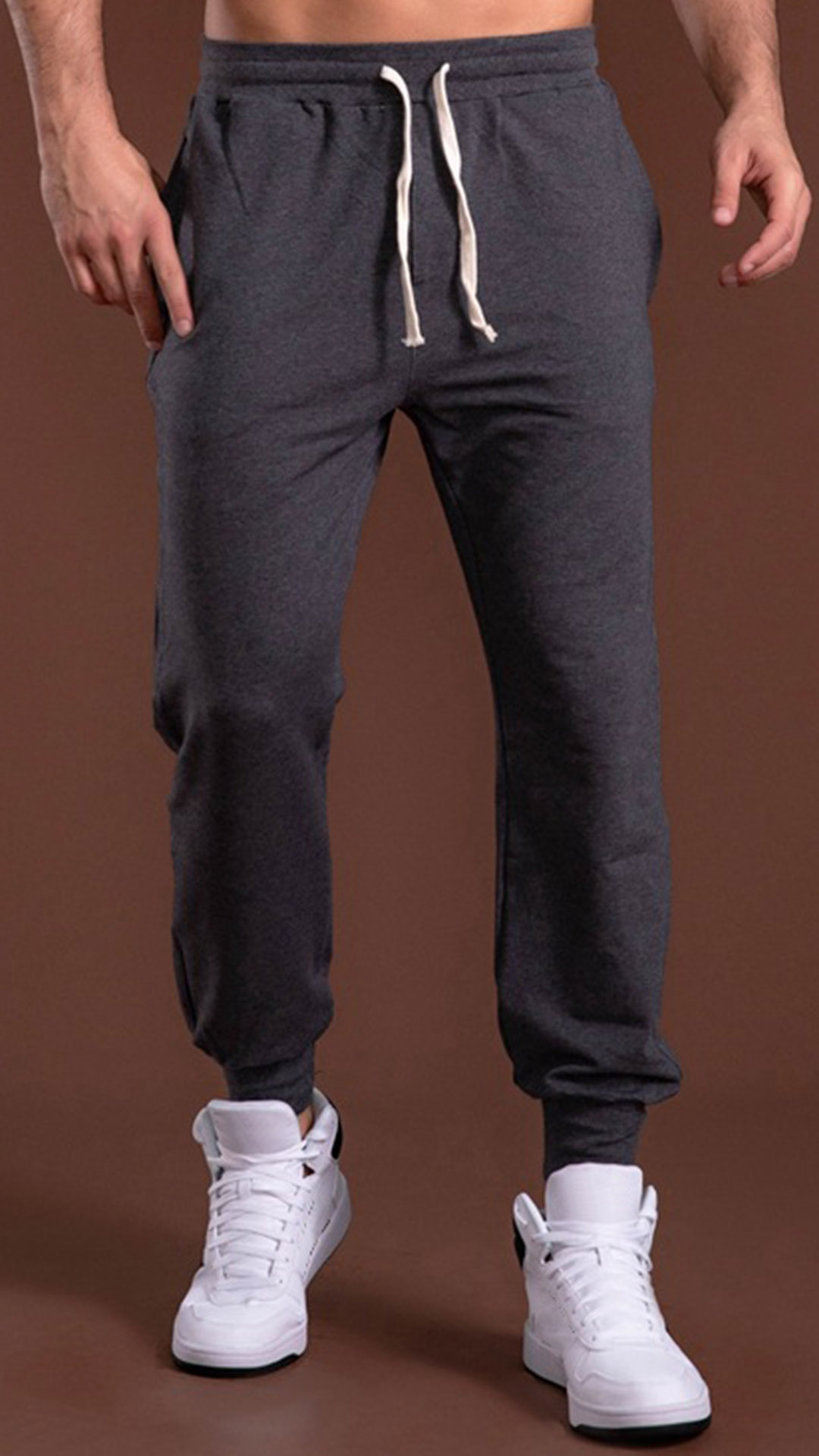 Casual Basic Drawstring Ribbed Trim Jogging Pants/ Joggers for Men