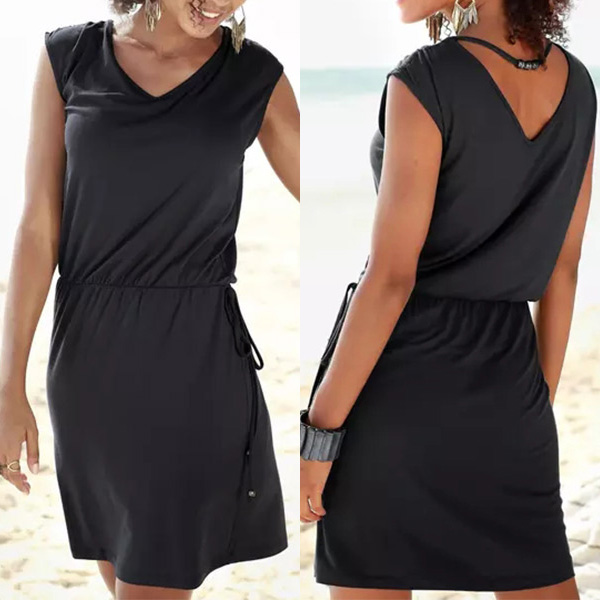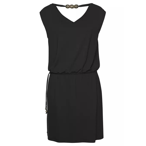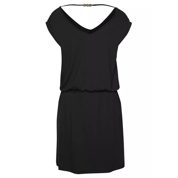 Casual Black Dress with V-neck and Beads